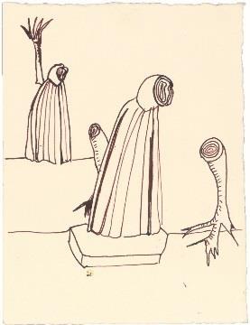 Her sculptures too, − crafted from perishable materials such as wood and loam − direct the gaze towards social circumstances such as war, famine and the refugee issue. This is how, for example, the “Skulls” series was created. The skulls allude to the violence of war, but also point towards the existential experience of dying, a process shared and suffered by all.
